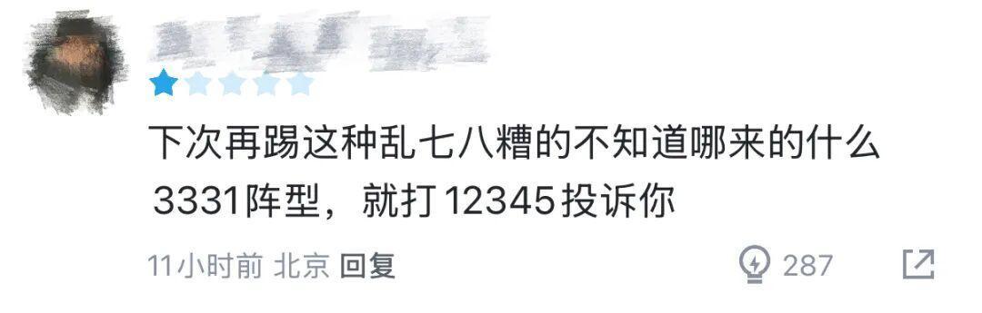看完比赛的球迷们被气坏了,赛后有球迷评论中国队主教练:下次再踢3331,我就打12345!