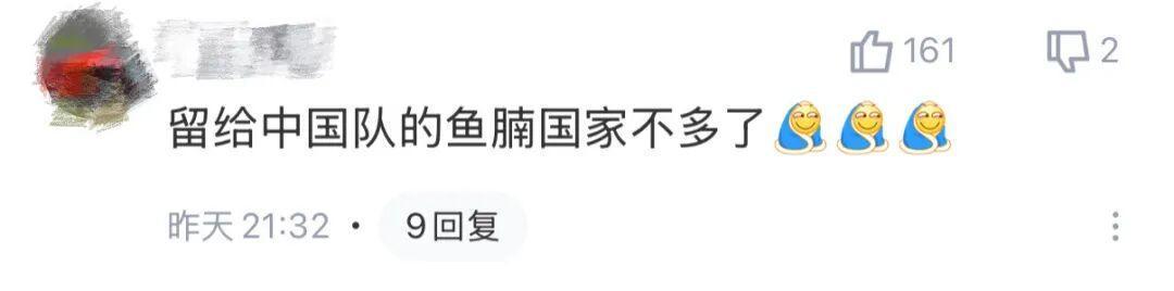 还有球迷表示:留给中国队的鱼腩已经不多了!